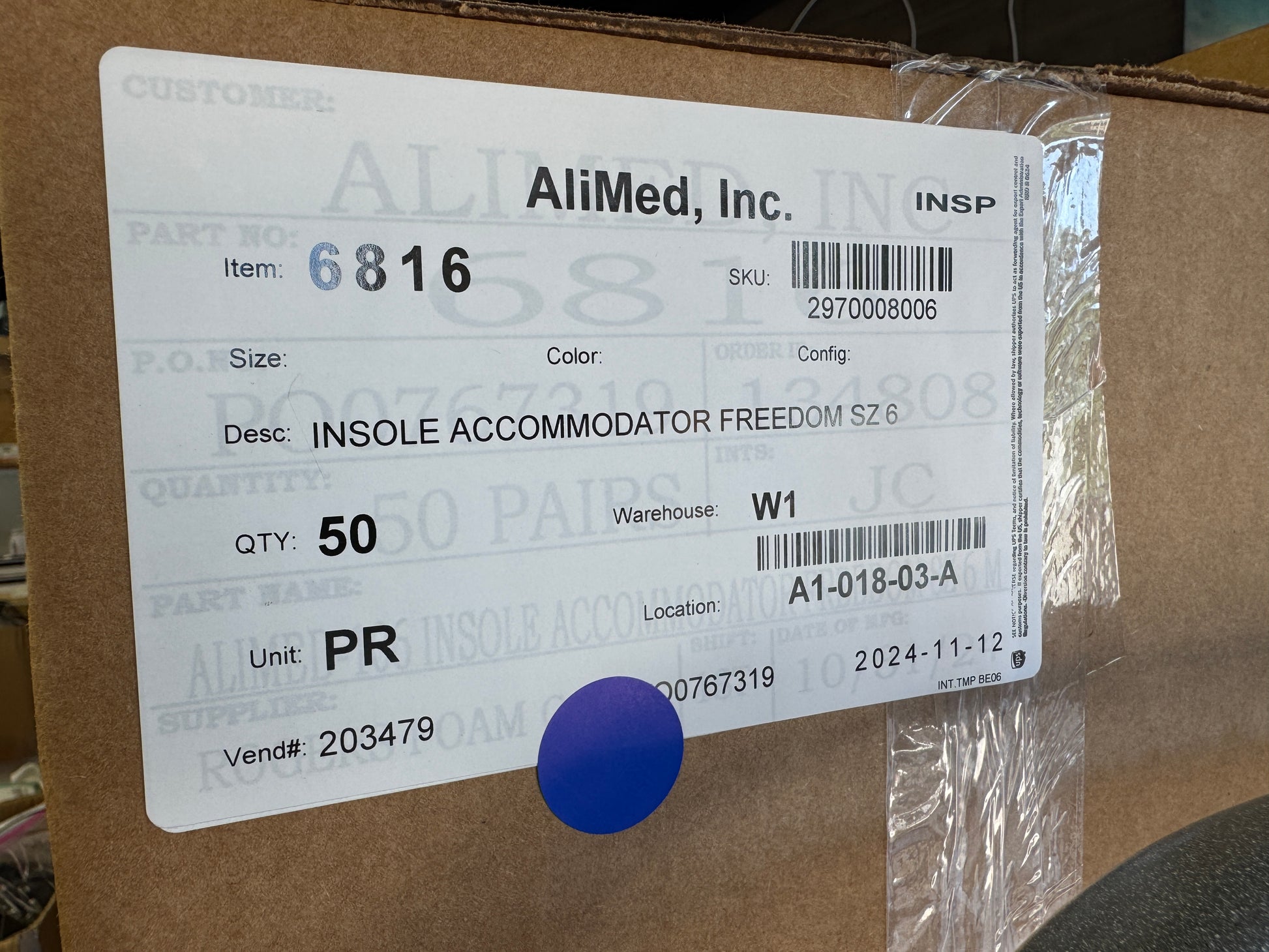 AliMed® FREEDOM® Accommodator™ Half Sole Orthotic Size 6 REF 6816
